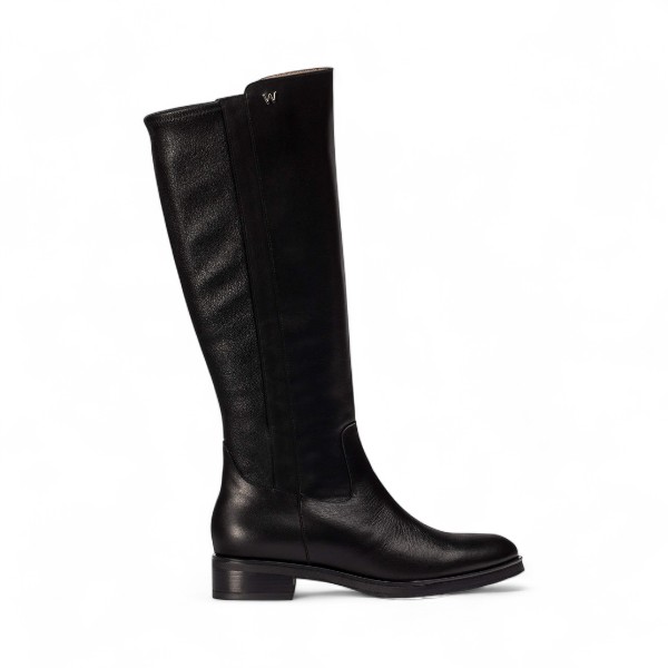 Botas CODIGREE 00 confeccionadas en piel negra con acabado liso y detalle elástico trasero para un ajuste cómodo a la pierna. Su diseño de caña alta y líneas limpias aporta una estética elegante y atemporal, ideal para el día a día. Incorpora cierre interior con cremallera para facilitar su colocación. La plantilla interna de MemoryGel garantiza el máximo confort, amortiguando la pisada en cada paso.