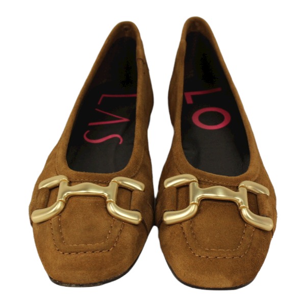 bailarina con corte mocasin y aplique metalico en serraje fabricada en españa