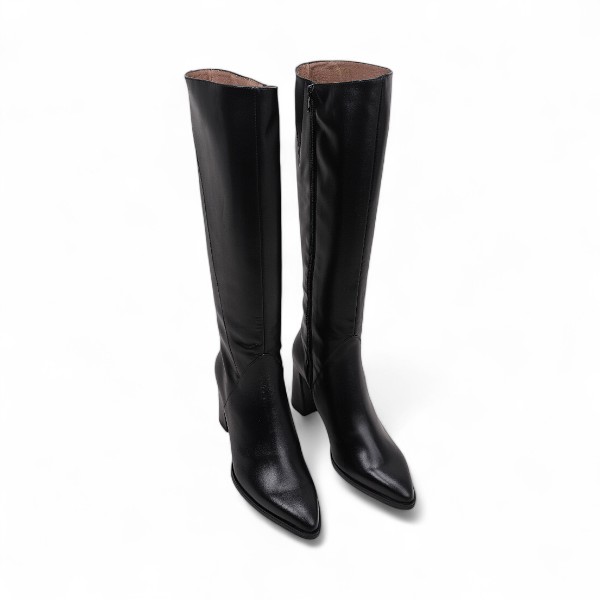 Botas de piel mujer WONDERS con piso flexible y tacón de 6 cm, combinan elegancia y comodidad. Diseño sofisticado, cuero negro de alta calidad y estabilidad para todo el día. Un básico versátil que eleva cualquier look con estilo.